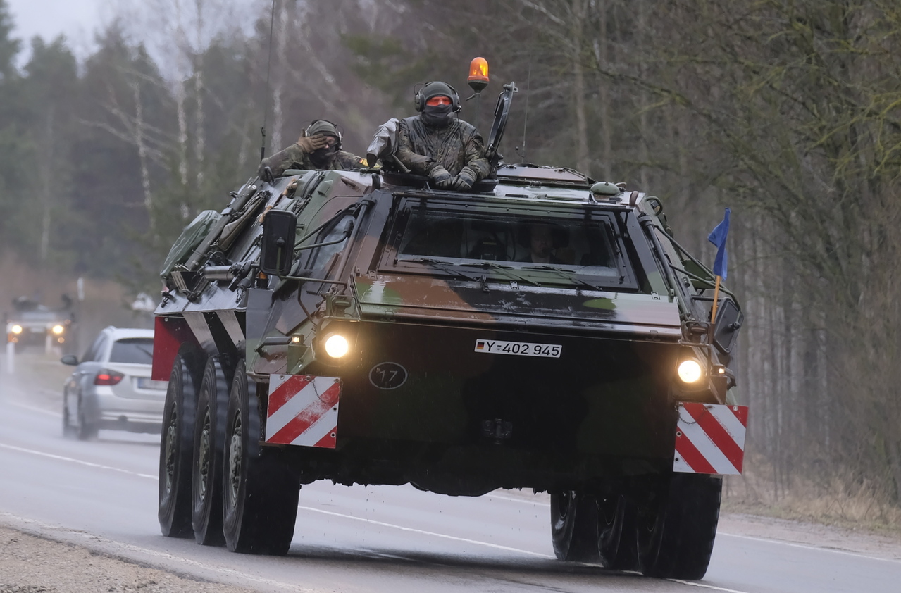 German military vehicle of the reinforcement forces arrives to Rukla military base in Lithuania, on Feb 17, 2022.