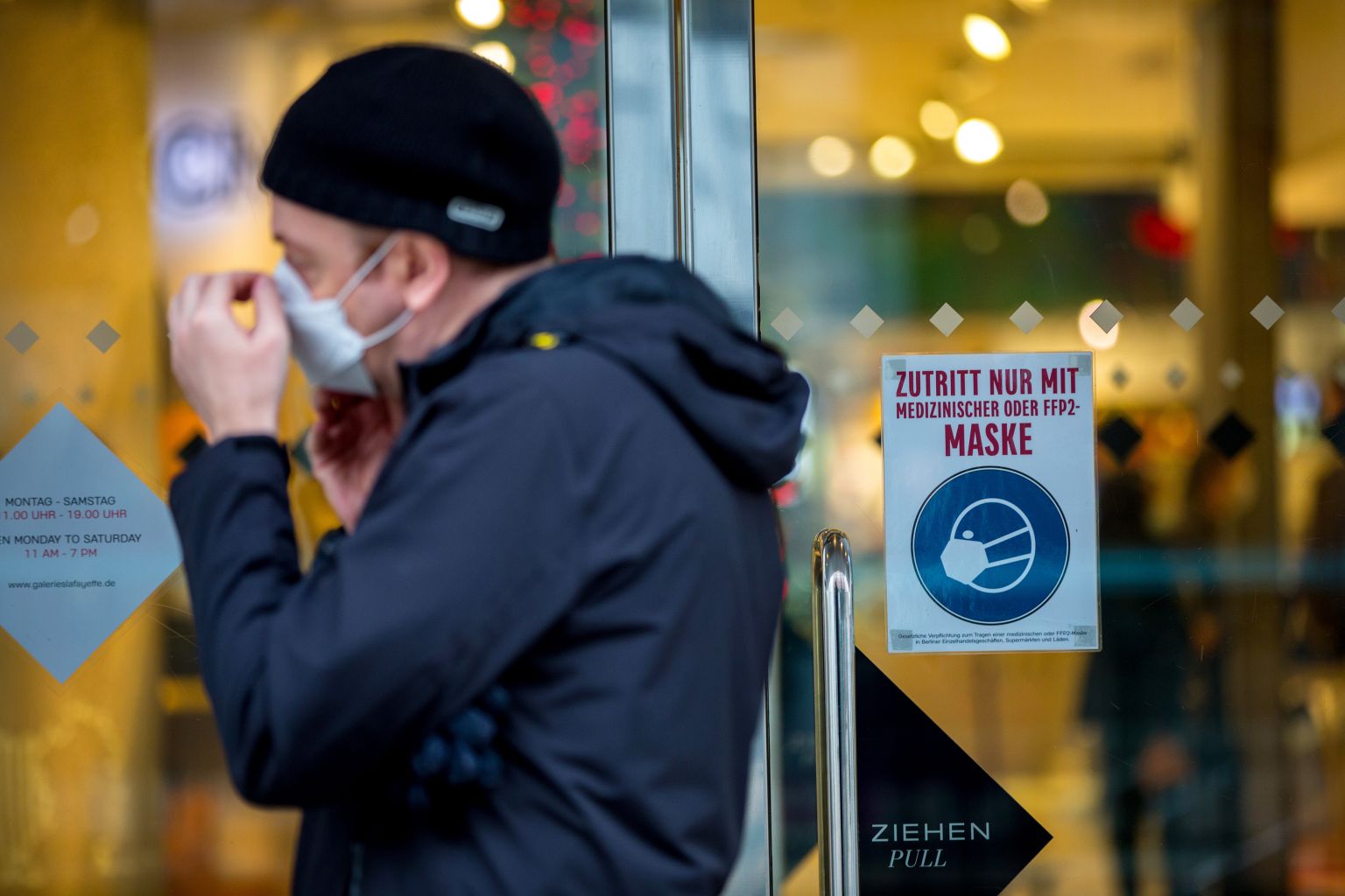 A sign at a Berlin mall advises shoppers to wear protective face masks.