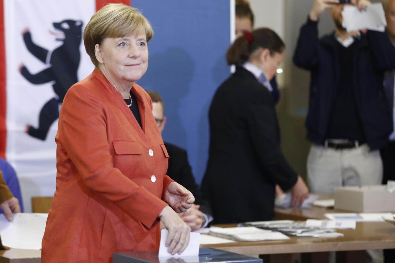 German Chancellor and CDU party leader Angela Merkel casts her vote at a polling station during general elections in Berlin, on Sept 24, 2017.