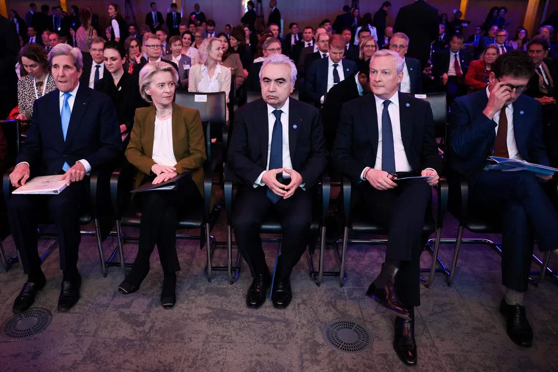 (From left) US climate envoy John Kerry, President of the European Commission Ursula von der Leyen, Executive director of the International Energy Agency Fatih Birol and French Minister for the Economy and Finances Bruno Le Maire attend the event
