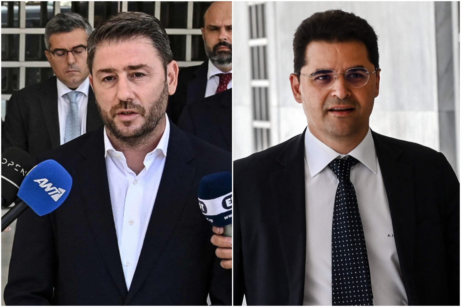 Opposition politican Nikos Androulakis (left) and journalist Thanasis Koukakis were spied on by Greece's national intelligence service.