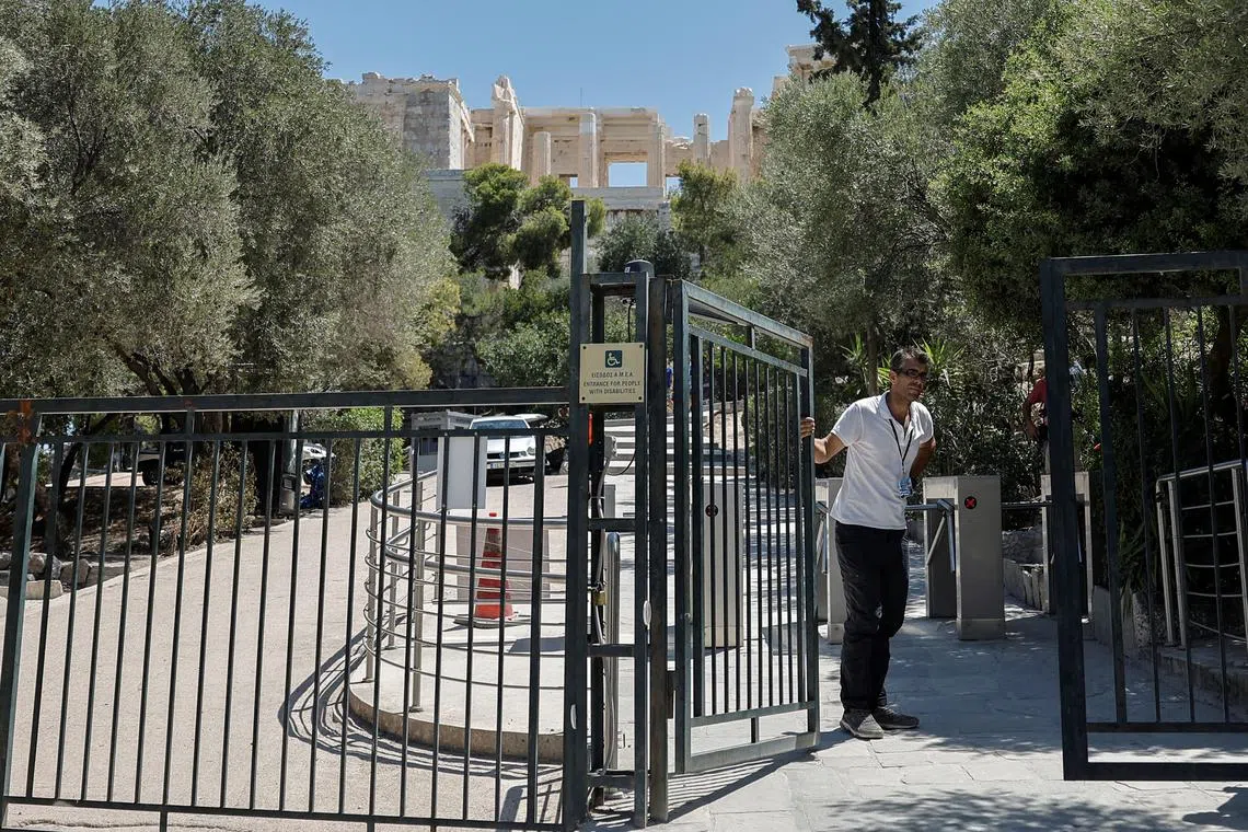 ATHENS - Greece shut the Acropolis, its most visited ancient site, for several hours in the afternoon on July 17 as the country baked in yet another heatwave that sent temperatures up to 38 deg C.