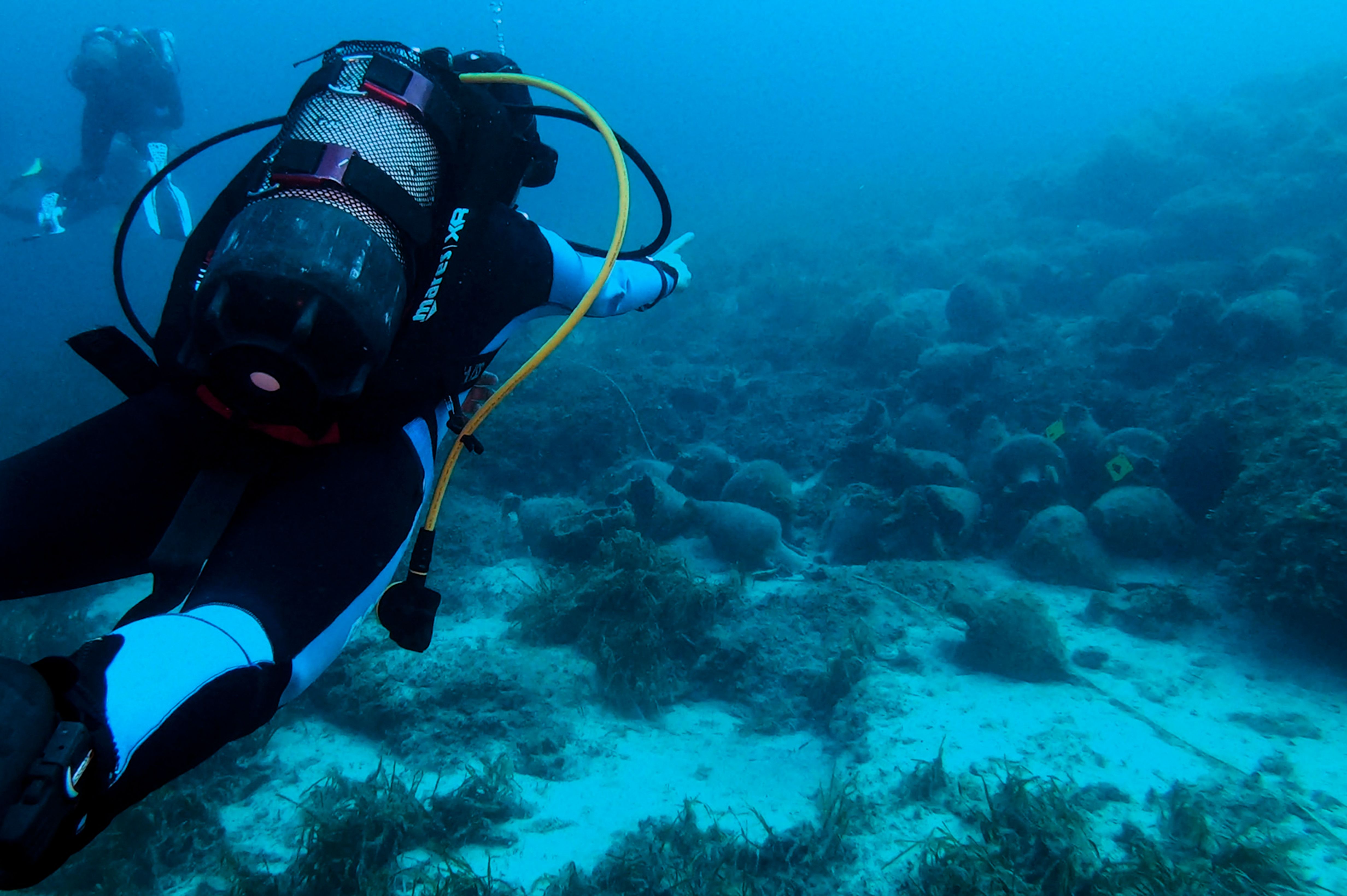 Due to the depth and technical difficulty of the descent, only qualified divers are allowed to visit the wreck of a ship that was delivering wine and other goods when it foundered, around the 5th century BC.