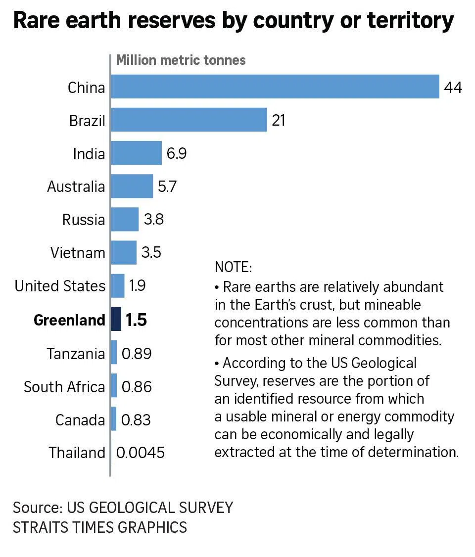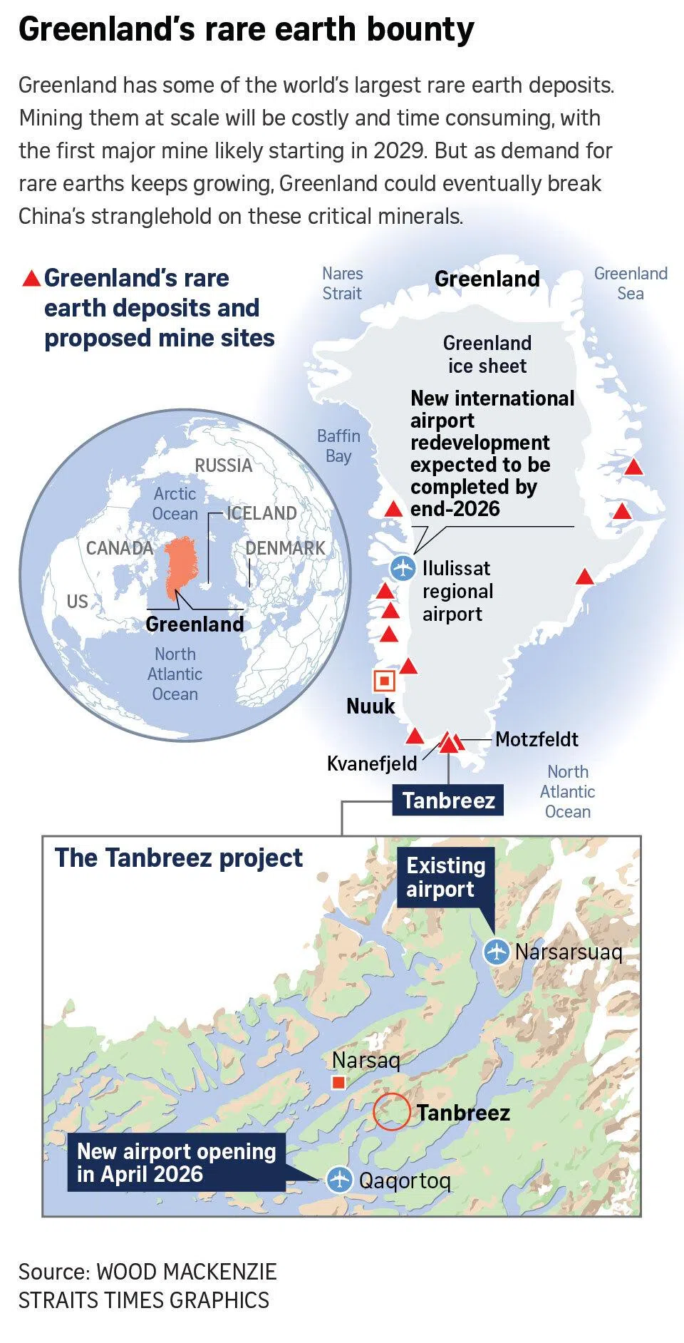 He noted that Greenland’s full resource potential for rare earths and other materials, including gold, iron ore and gemstones, remains unknown. “Most places need more research and more exploration,” he told ST.