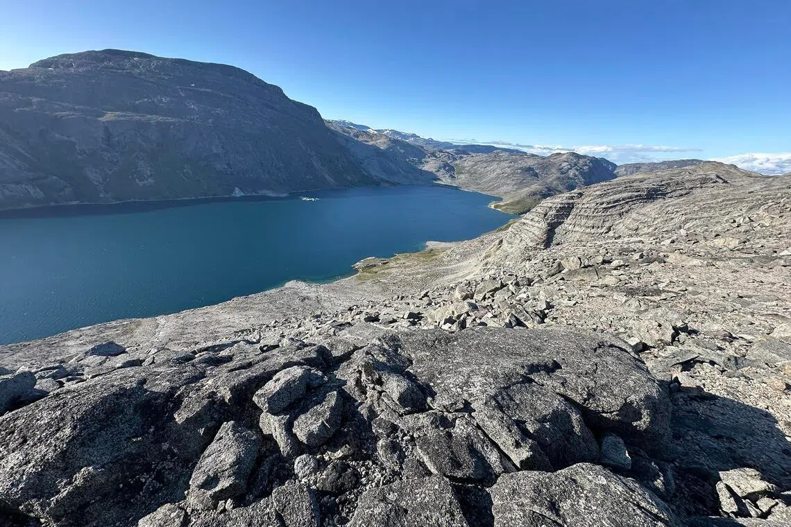 The fjord adjacent to the Tanbreez rare earths concession in Southern Greenland. Ships would load critical mineral concentrates for export to processing partners overseas.