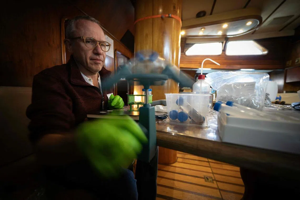 Dr Eric Marechal, the director of research at the French National Centre for Scientific Research, analysing samples of ice algae.