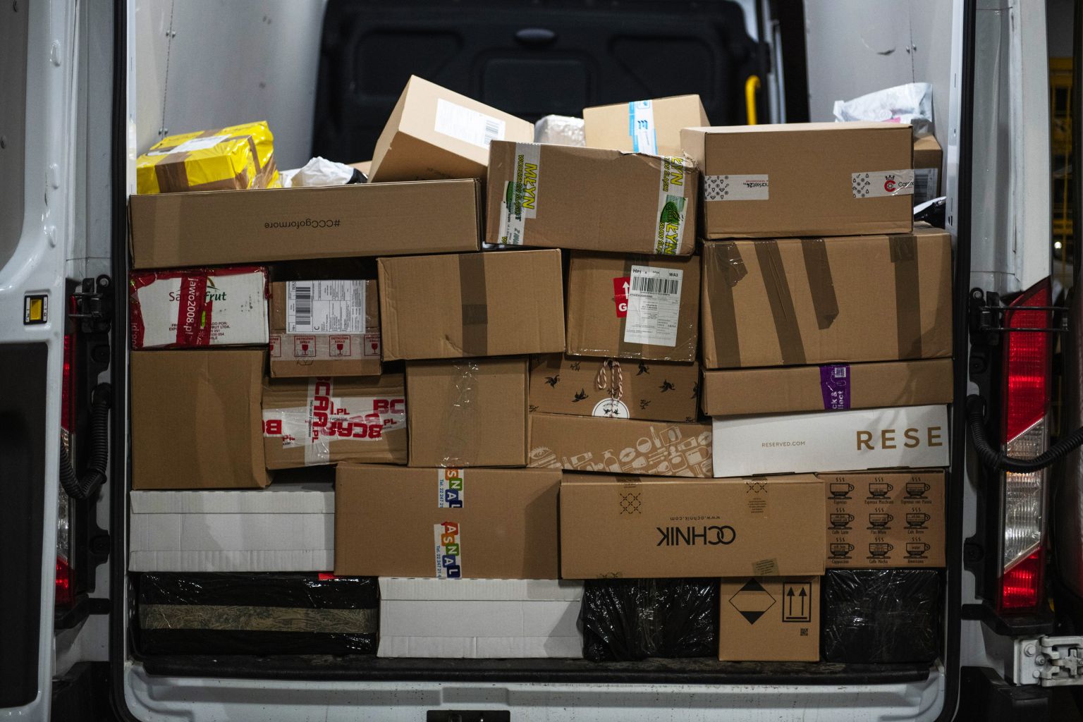 Parcels are seen aboard a delivery van in Poland.