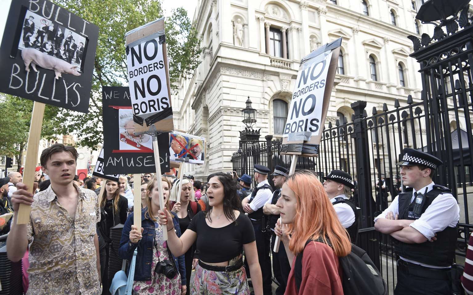 Protestors gather outside 10 Downing Street in London, on June 24, 2016.