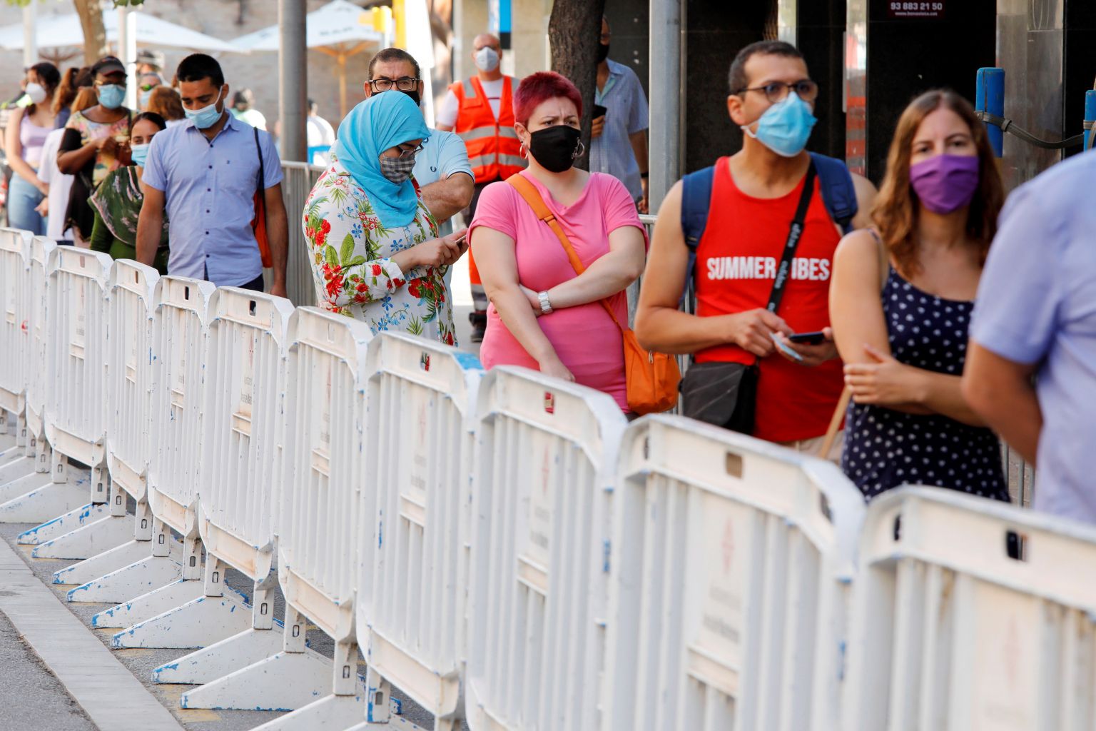 Barcelona residents wait to be tested for coronavirus during a screening exercise on Aug 26, 2020.