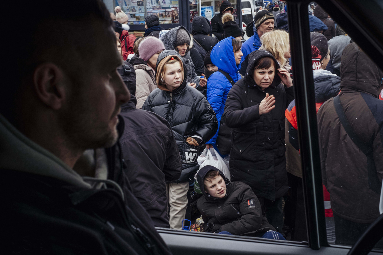 A March 7 photo of Ukrainians fleeing the capital Kyiv.