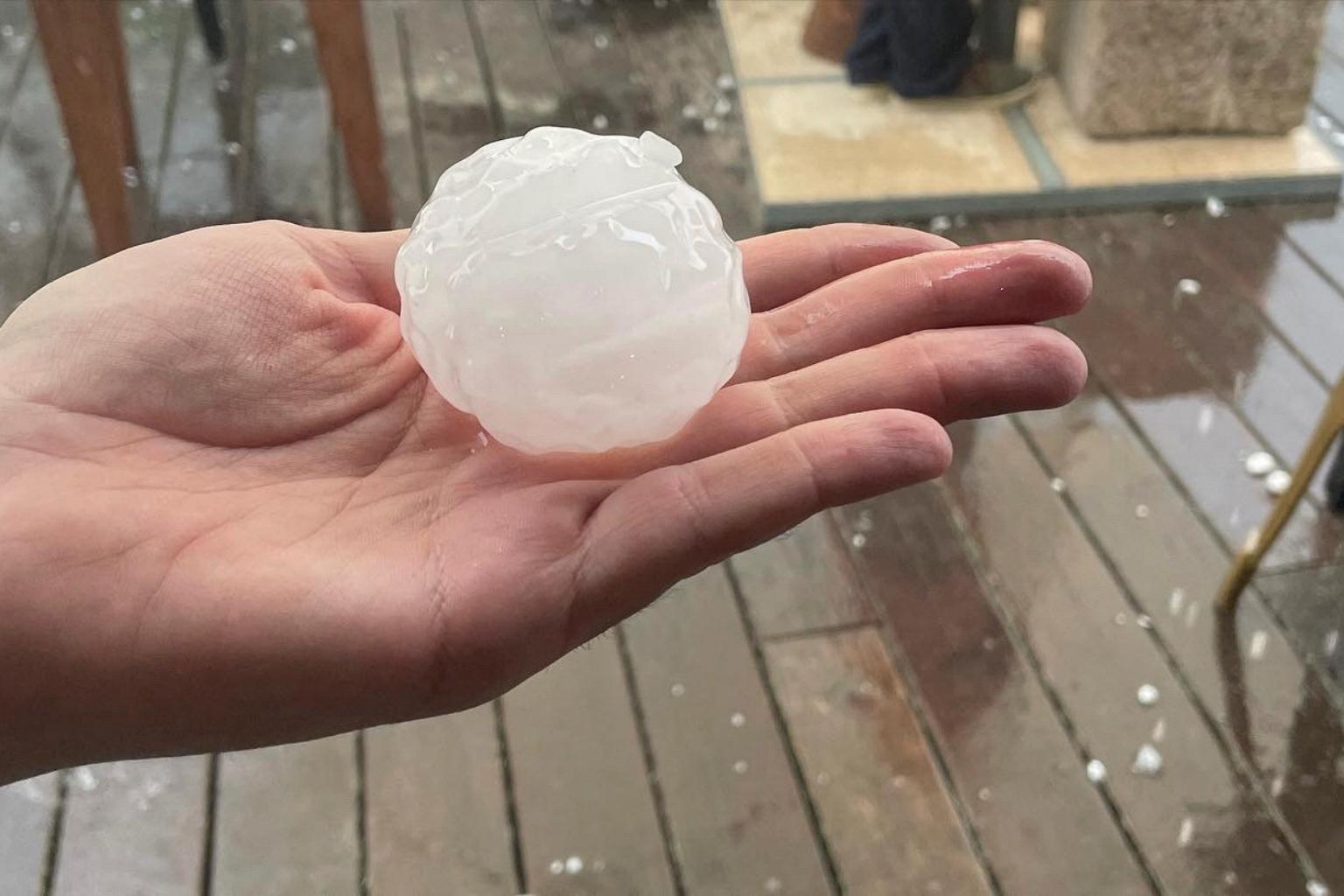 A person holding a hailstone during a hailstorm in Girona, Spain, on Aug 30, 2022. The girl was killed when a hailstone hit her on the head.