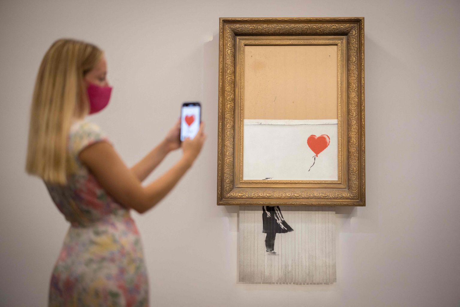 Onlookers gasped when the then-titled "Girl with Balloon" was sucked into a shredder as the hammer fell following a bid of £1.04 million at an October 2018 auction at Sotheby's in London.
