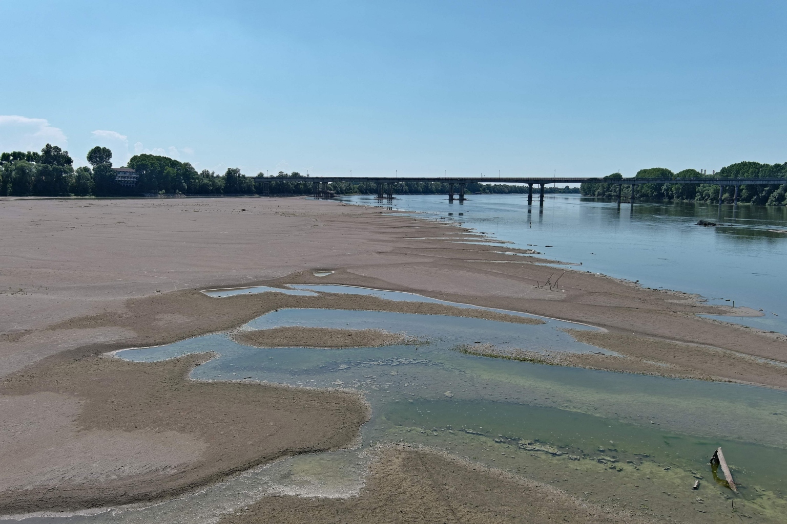 Several months without rains and an earlier-than-usual halt in flows from melting snow in the western Alps have made large sections of the river bed visible - so much so that a German tank from World War II resurfaced recently.