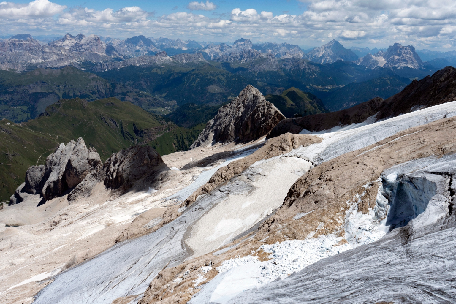 In the Dolomites mountain range in north-eastern Italy record high temperatures this month sent a glacial ice shelf crashing from the top of the Marmolada mountain, killing 11 people.