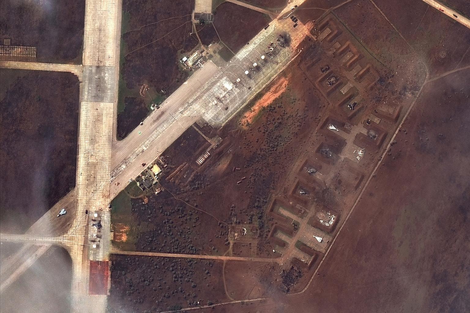 A satellite image showing the aftermath of a reported attack at the Saki air base in Crimea, on Aug 10, 2022.