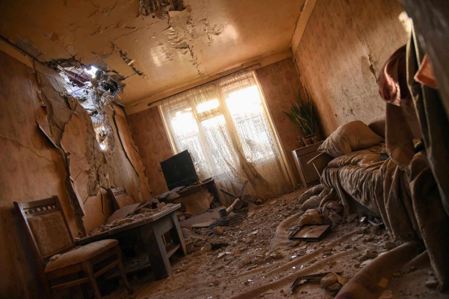 An apartment that was allegedly damaged by recent shelling in Stepanakert, on Oct 3, 2020.