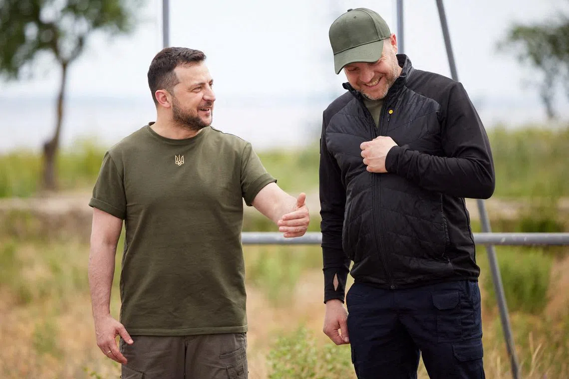 Ukraine’s Interior Minister Denys Monastyrskyi (right) was appointed by President Volodymyr Zelenskiy in 2021.