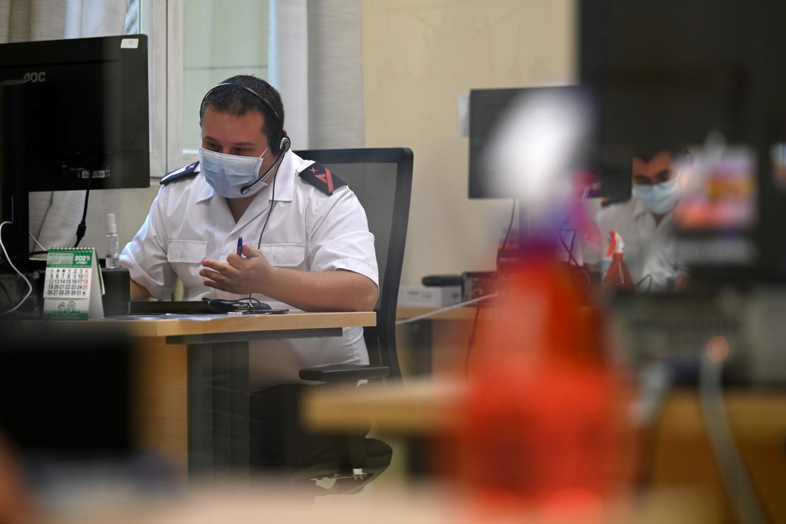 On a rainy morning in October, nine navy personnel are sitting at their desks behind a plexiglass panel, speaking softly into the phone while taking notes on a computer.