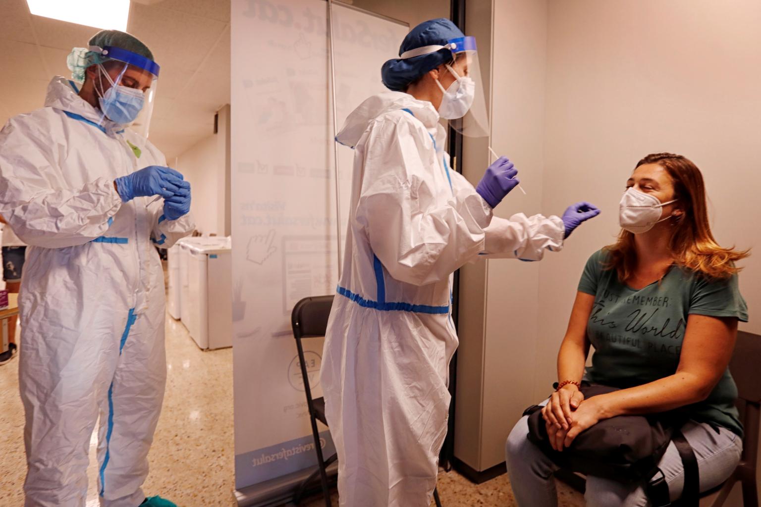 Healthcare workers preparing to test a resident for the coronavirus in Barcelona, Spain, on Aug 26, 2020.