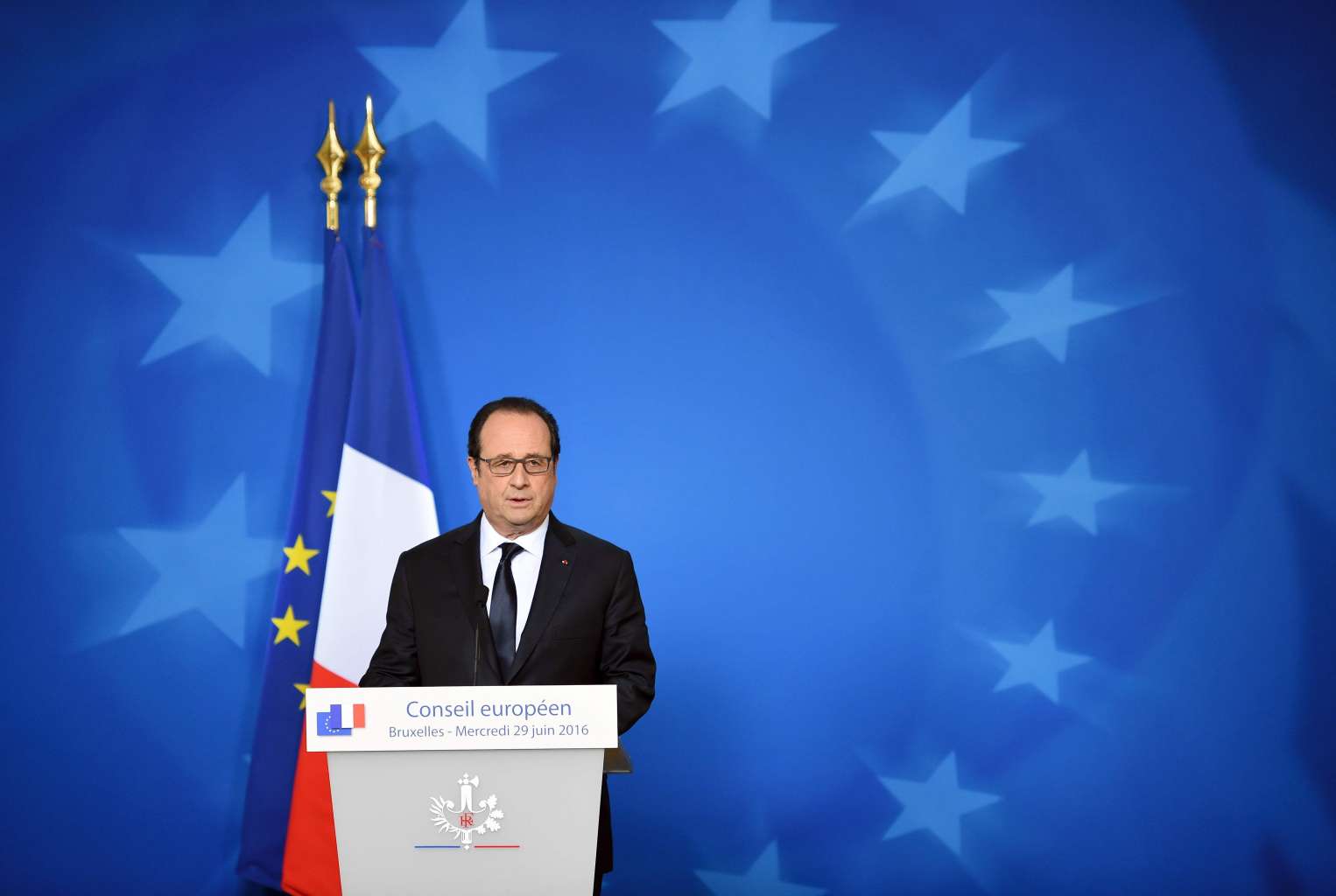 French President Francois Hollande gives a press conference during an European Union summit on June 29, 2016 in Brussels.