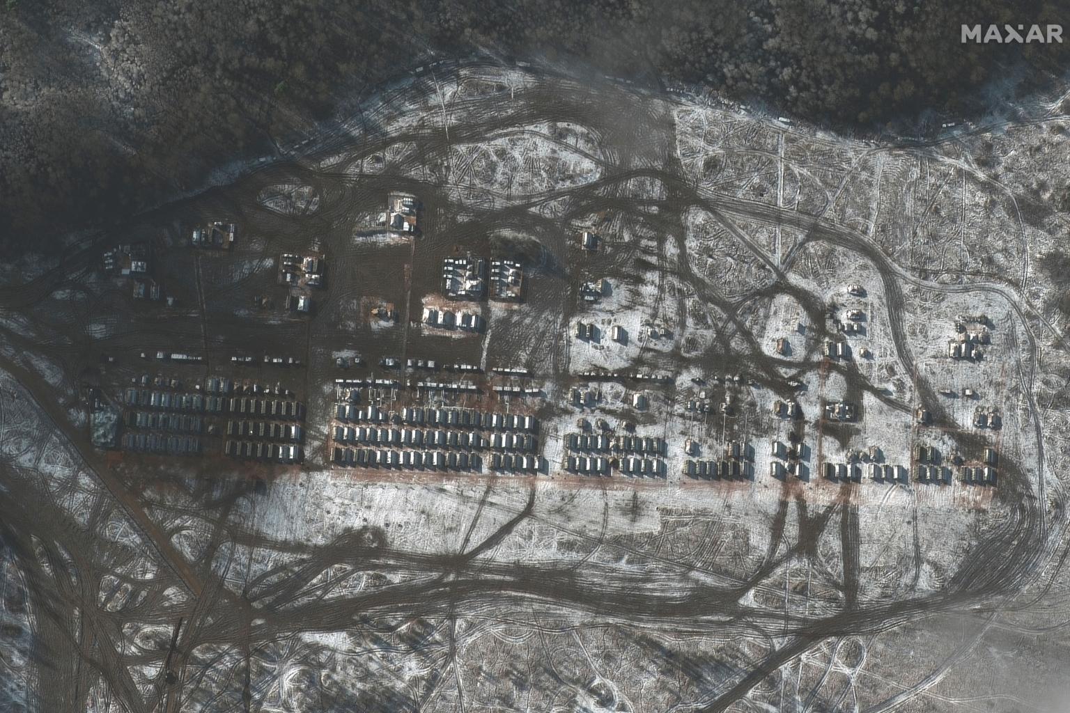 A satellite image of Russian troop tents and administration area in Yelnya, Russia on Nov 9, 2021.