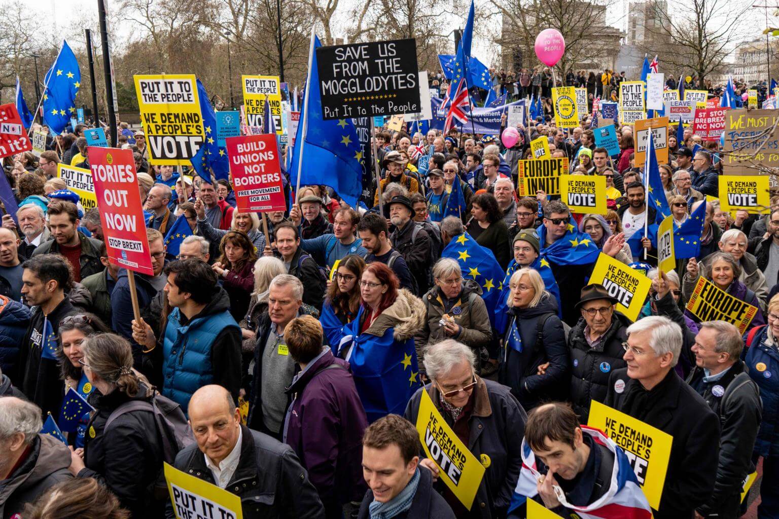 People attending a march and rally to demand a second Brexit referendum in central London, on March 23, 2019.