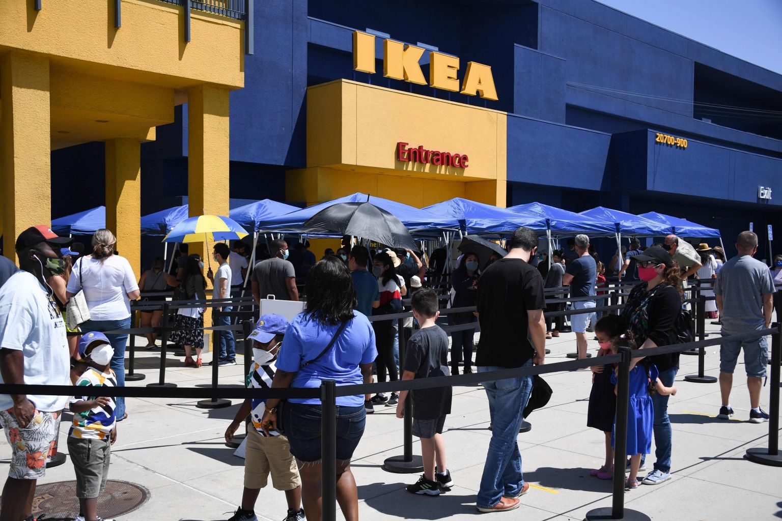 People wait in line to shop at an Ikea store in the US state of California.