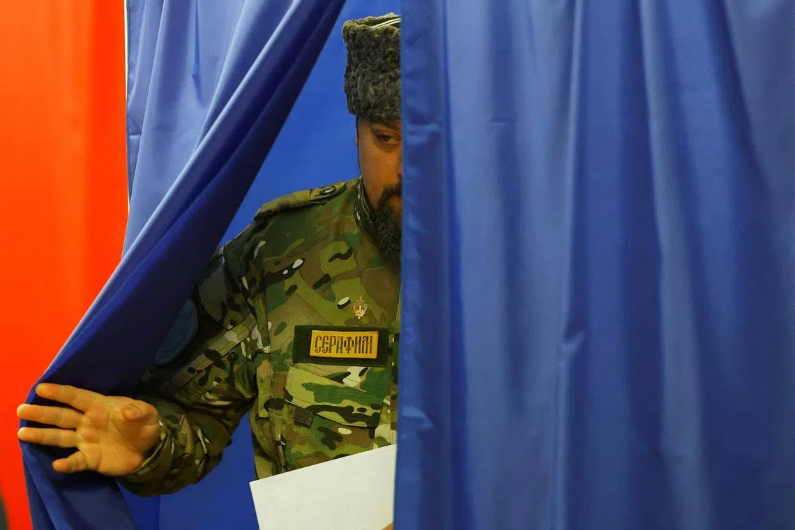 Wearing face coverings, soldiers have accompanied poll workers door-to-door throughout the occupied parts of the four Ukrainian regions that Russia has annexed after invading the country two years ago, according to local residents, statements by Russian officials, and videos posted on social media.