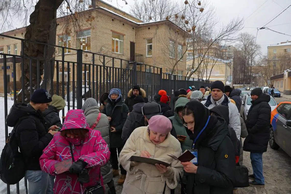 People putting signatures in support of Mr Boris Nadezhdin outside his campaign office in Moscow, Russia.