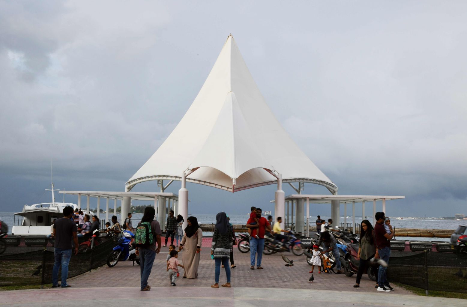 People walk along a promenade near a beach in the Maldives' capital Male on Feb 7, 2018.
