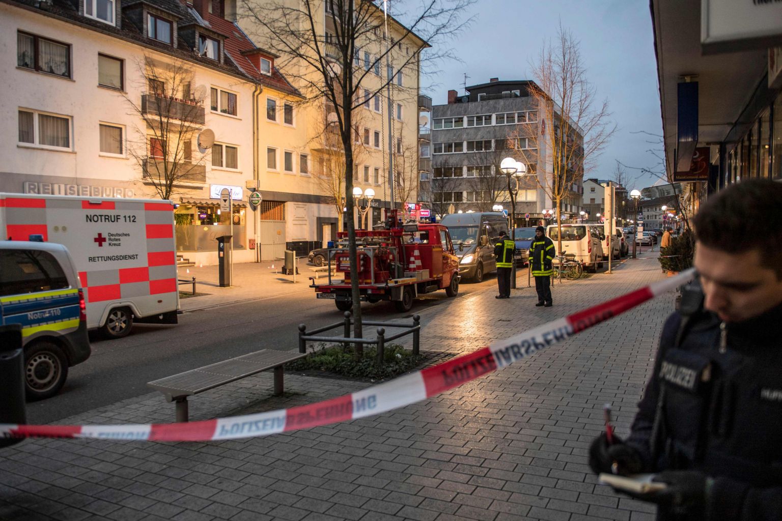 The attacks occurred at two bars in Hanau, about 20km from Frankfurt, where armed police quickly fanned out and police helicopters roamed the sky in the search for those responsible for the bloodshed.