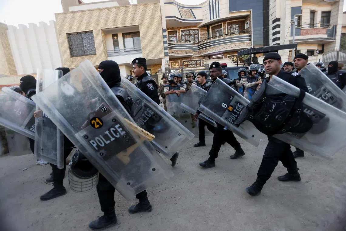 A crowd of supporters of firebrand Shi’ite cleric Moqtada Sadr stayed inside the compound for about 15 minutes, then left as security forces were deployed, an AFP photographer said.