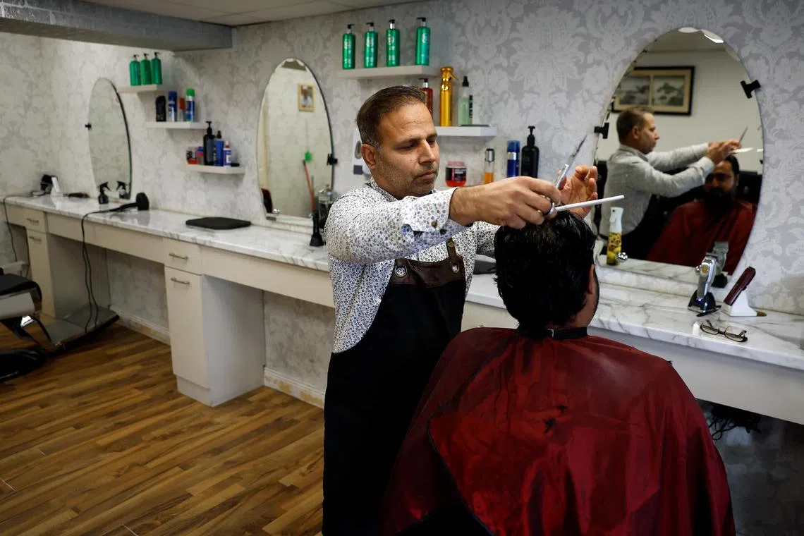 Mr Sajjad Hussain, a local community activist from Pakistan and owner of Saj’s Barber Shop, cutting a customer’s hair.