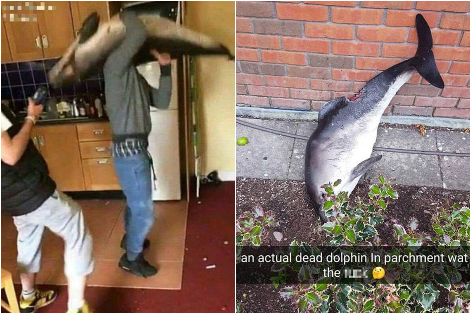 Photographs of two young men dancing with a dead dolphin during a party at an accommodation complex near the Cork Institute of Technology (CIT) in Ireland has drawn widespread condemnation online.
