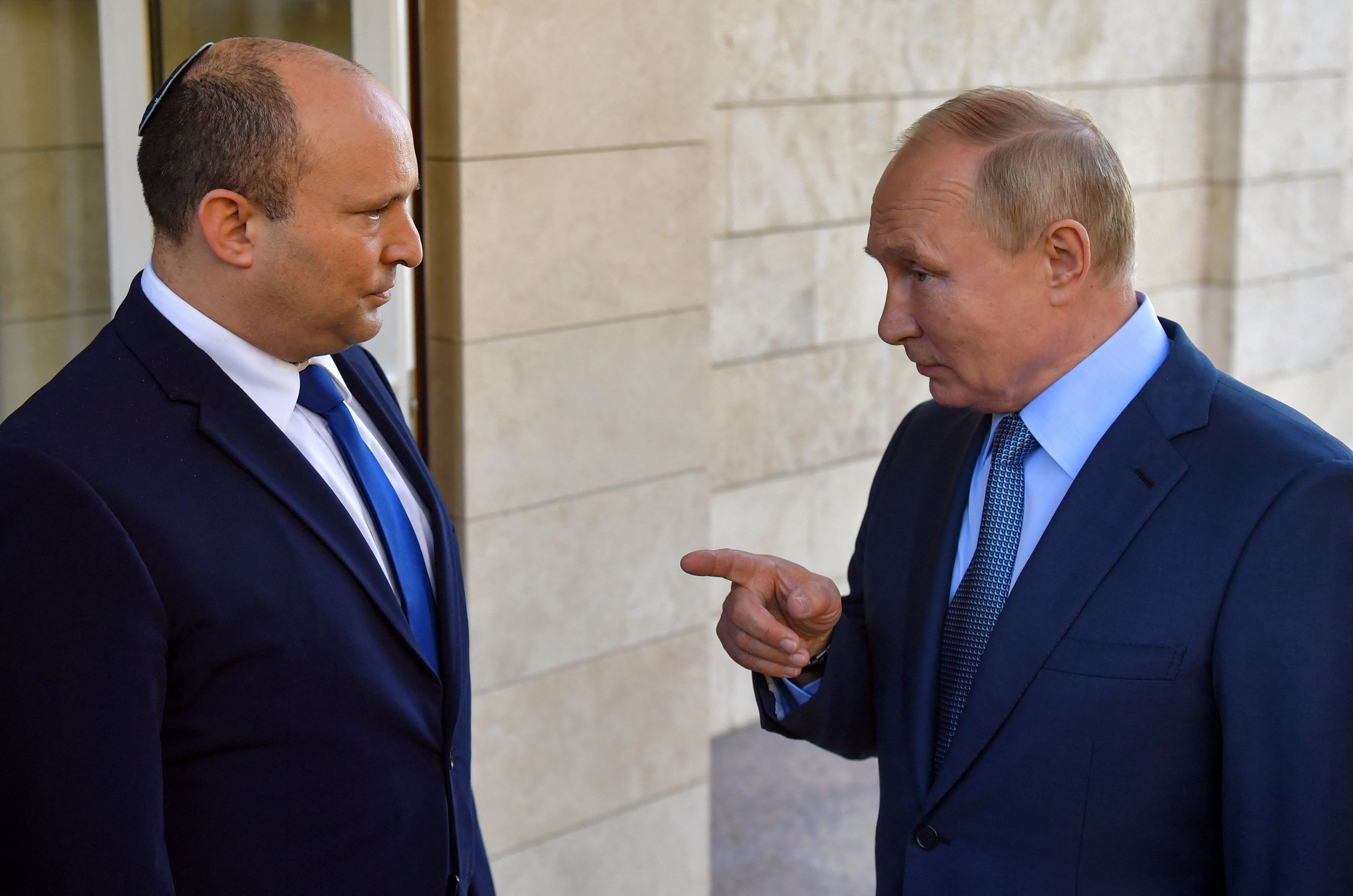 Israeli Prime Minister Naftali Bennett (left) is pictured with Russian President Vladimir Putin at a previous meeting in Sochi, Russia.