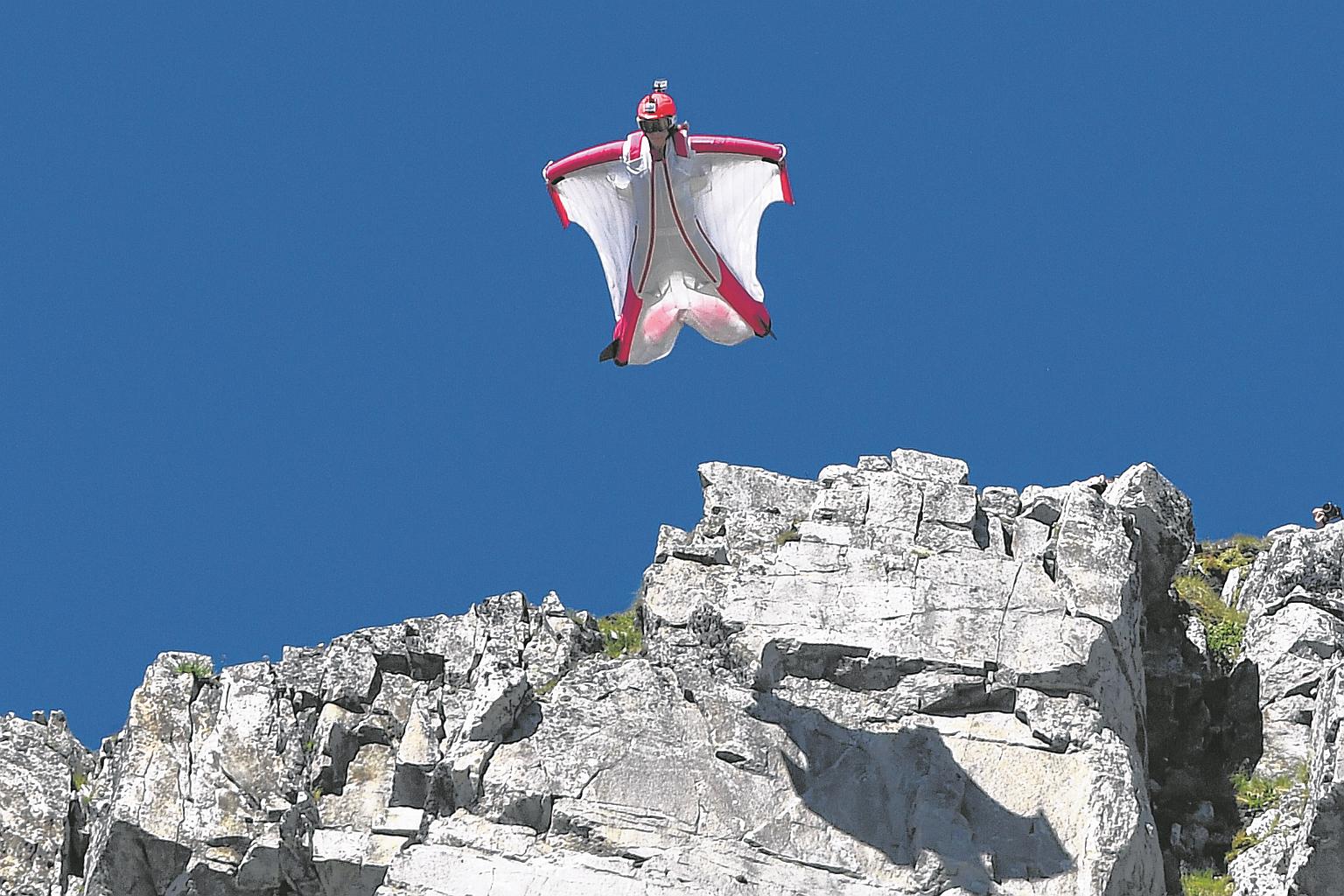 The average wingsuit jump lasts barely a minute and within eight seconds, the jumper reaches speeds of 200 kmh.