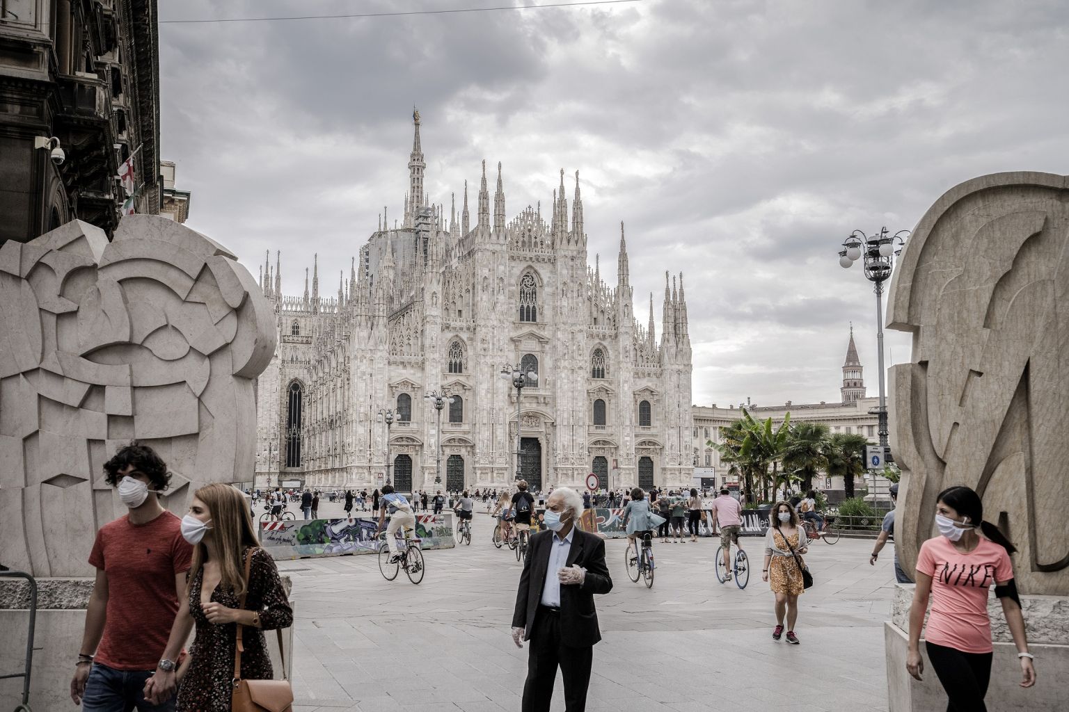 Crowds pass by the Piazza Duomo in Milan, on May 10, 2020.