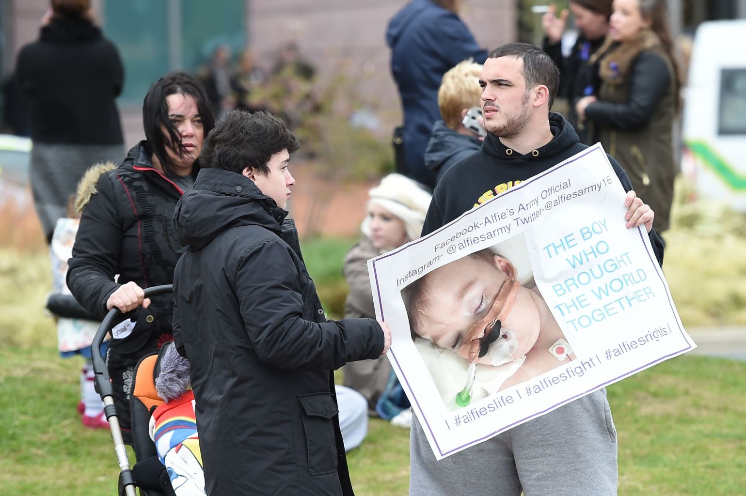 On Monday, around 200 protesters gathered outside the hospital shouting, "Save Alfie Evans." A large group then attempted to storm the entrance before being blocked by police.