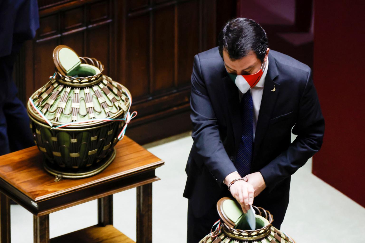 Leader of Italy's rightist League party Matteo Salvini casting his vote for president on Jan 24, 2022.