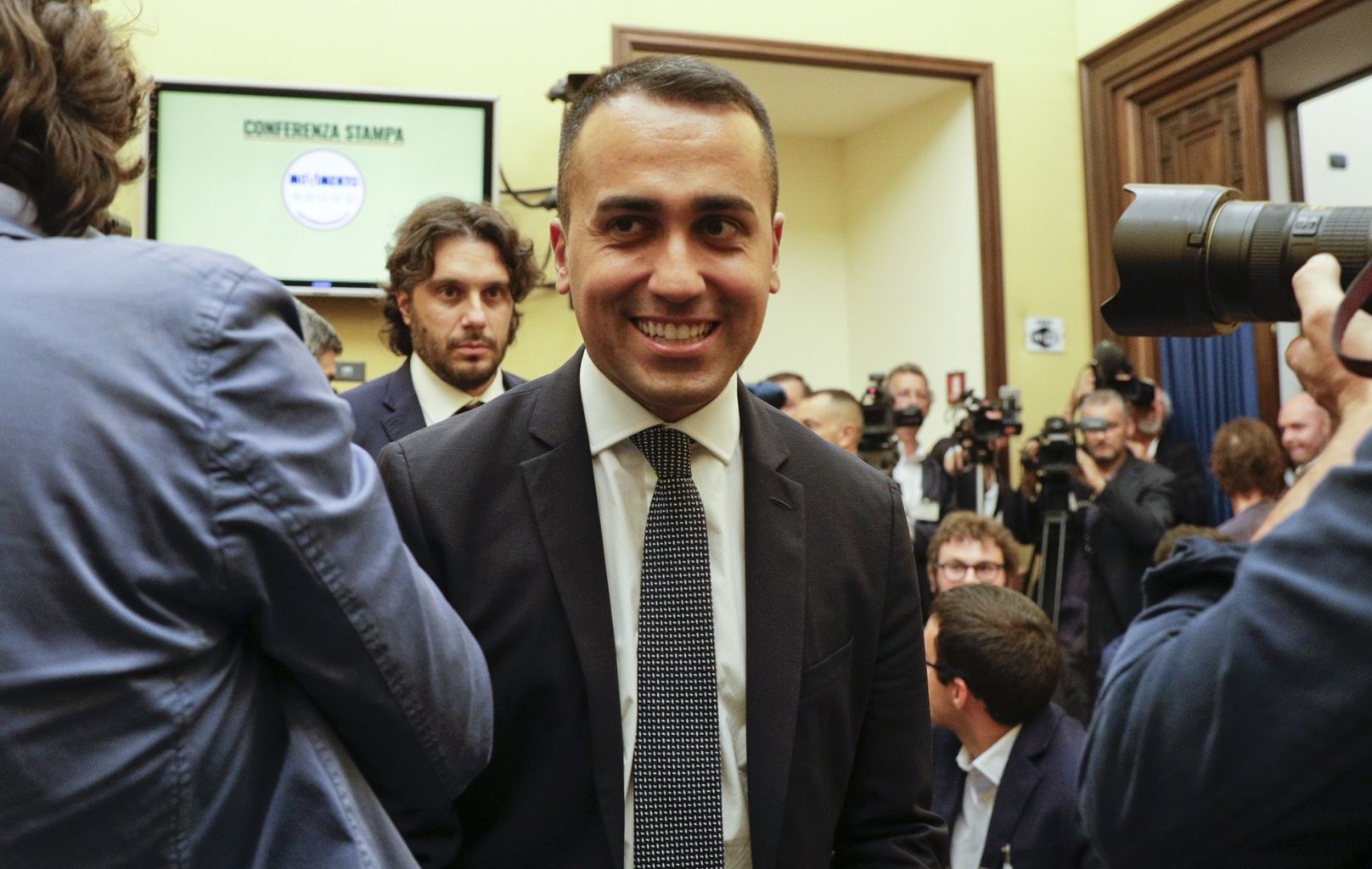 Leader of the 5-Star Movement, Luigi Di Maio, smiles as he meets the media in Rome.