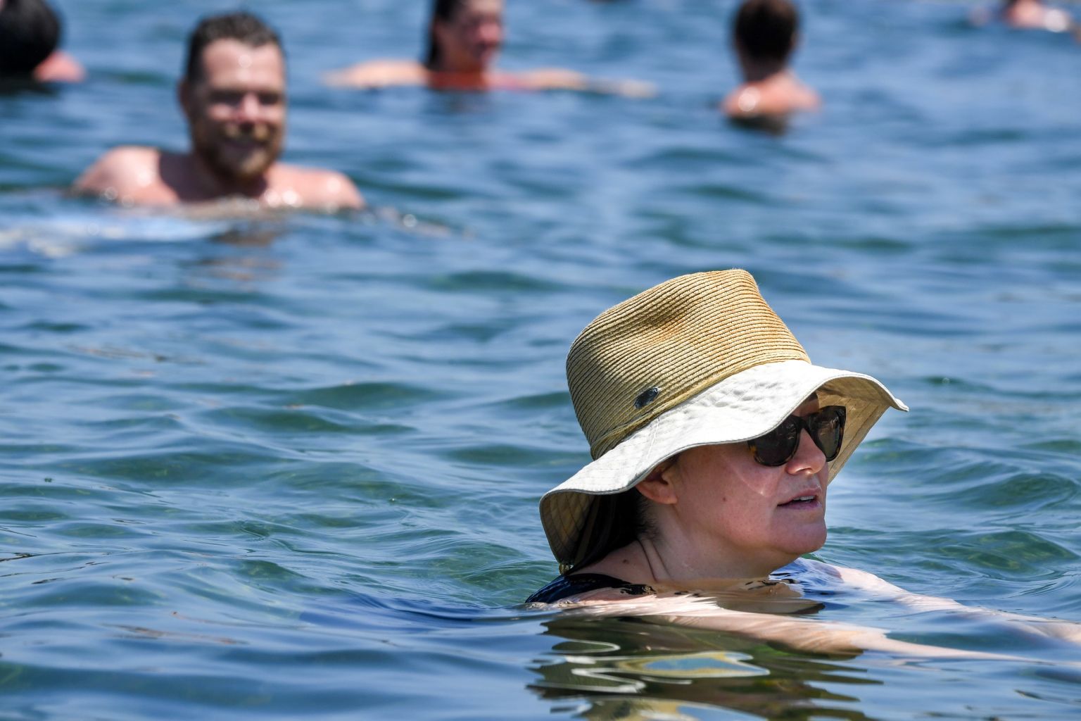 Swimmers take a dip at Mahon Pool, Maroubra, south of Sydney, Australia, Jan 31, 2020.