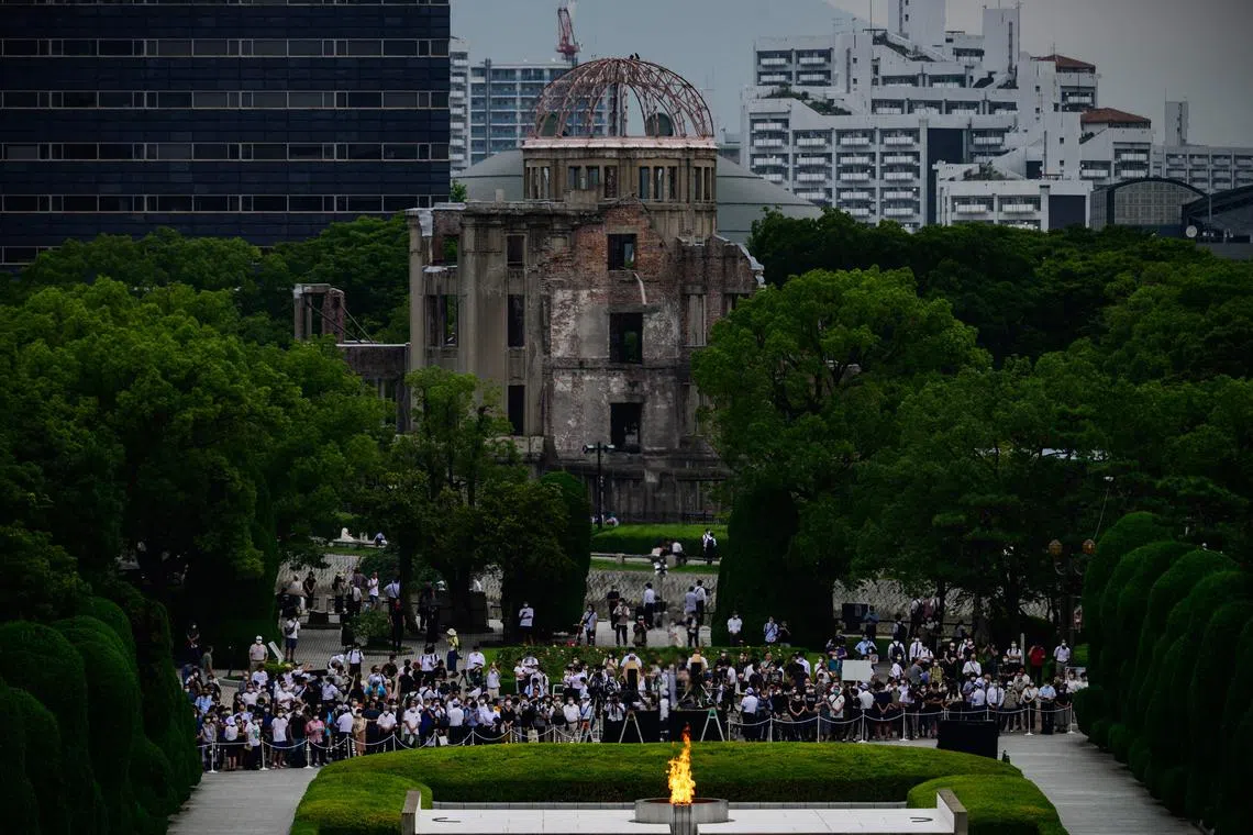 A memorial service in front of the Atomic Bomb Dome in Hiroshima on Aug 6, 2020.