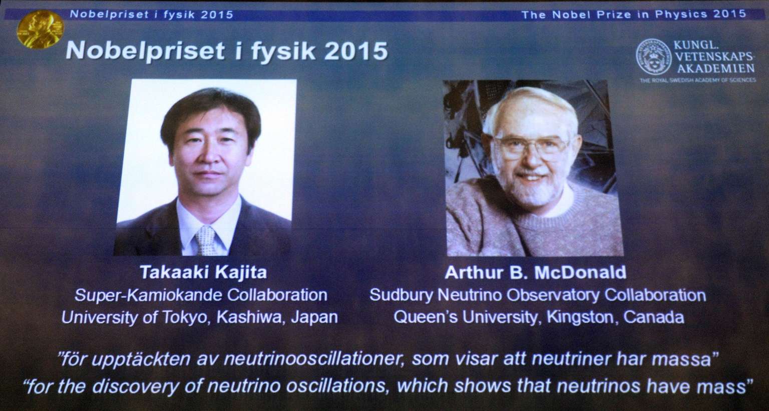STOCKHOLM (Reuters/AFP) - Japan's Dr Takaaki Kajita and Canada's Dr Arthur B. McDonald won the 2015 Nobel Prize for Physics for their discovery that neutrinos have mass, the award-giving body said on Tuesday (Oct 6).