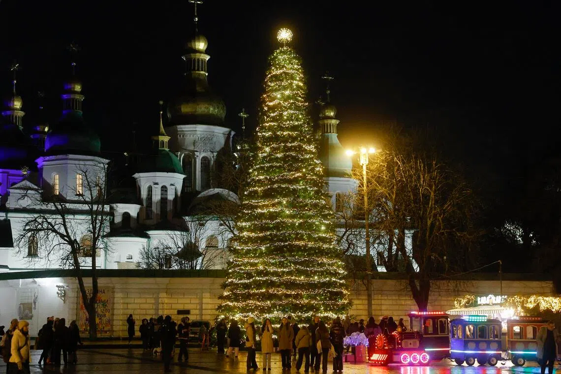 KYIV – Ms Vlada Ovchinnikova stood posing for her boyfriend at a stall offering mugs of steaming wine, as children rode horses on a brightly lit merry-go-round in front of a giant Christmas tree.