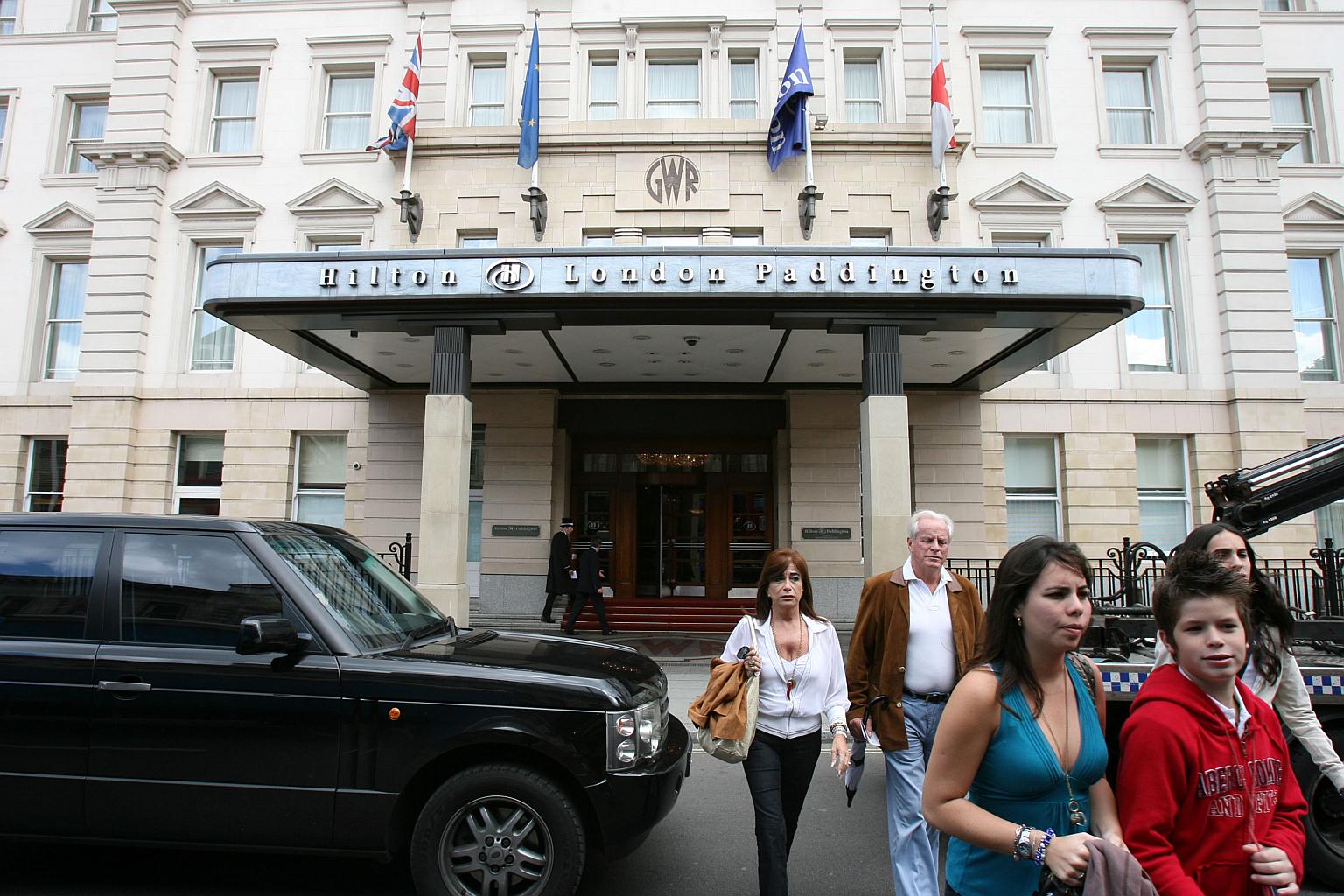 Hotel guests cross the street outside the Hilton Hotel at Paddington in London, on July 4, 2007.
