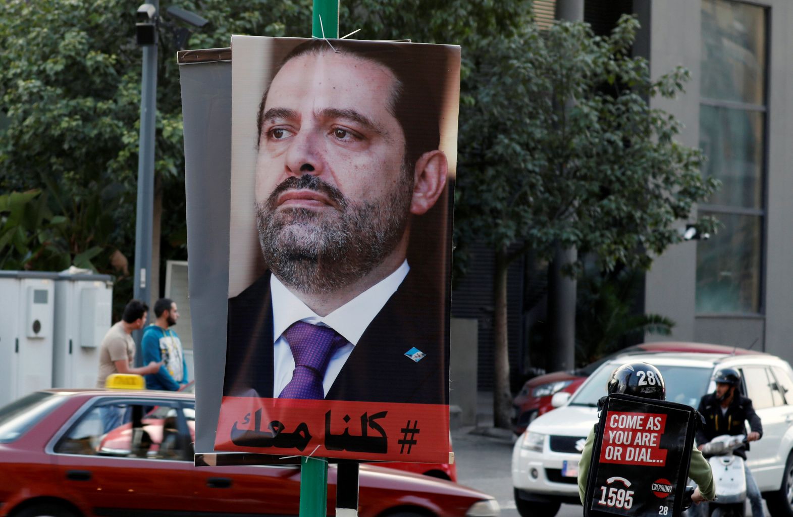 A poster depicting Saad al-Hariri, who announced his resignation as Lebanon's prime minister from Saudi Arabia, is seen in Beirut, Lebanon on Nov 17, 2017.