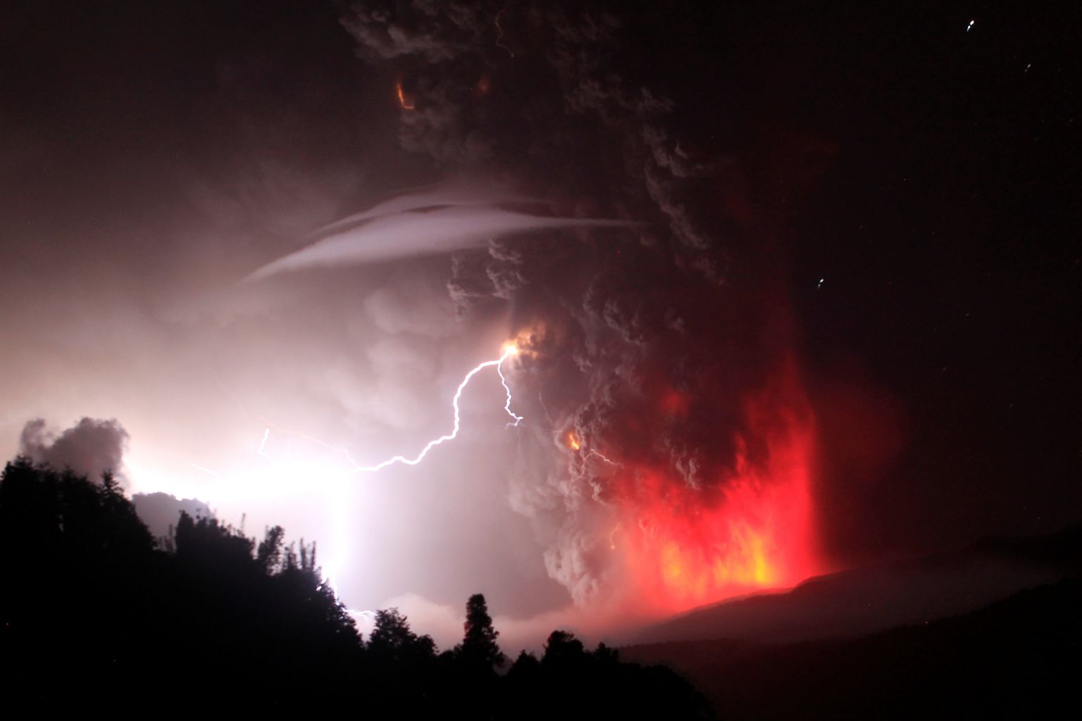 Lightning bolts strike around the Puyehue-Cordon Caulle volcanic chain in Chile.