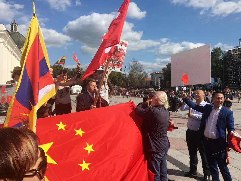 Counter-demonstrators waving Chinese flags approached the rally in Vilnius, triggering a disturbance. Police later fined two Chinese citizens for disturbing public order.