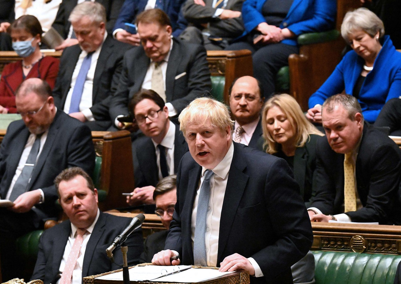 Mr Boris Johnson speaking during a statement following an update on a report by Sue Gray, in the House of Commons in London on Jan 31, 2022.
