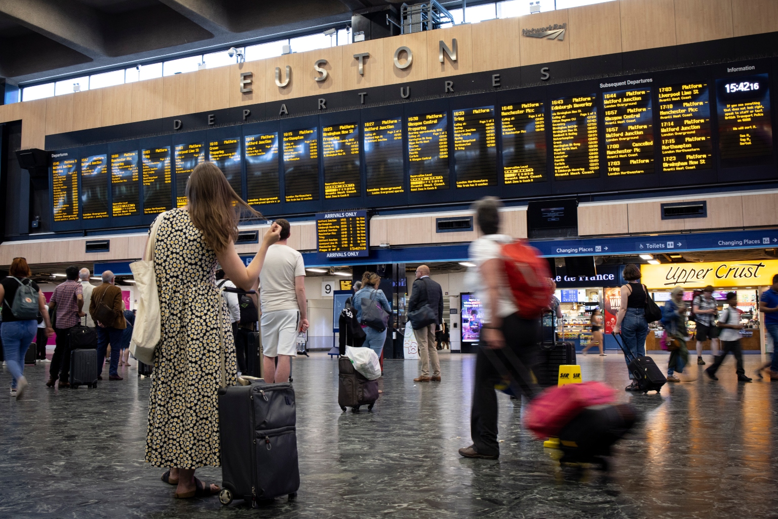 Passengers wait for train services at Euston station in London, on June 22, 2022.